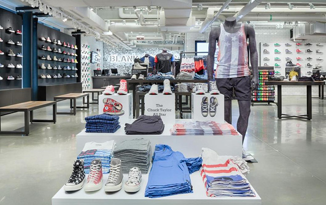 Project lead from initial briefing through installation as global account manager at RTC. Directed internal design and engineering of many custom, prototype furnishings and fixtures and managed project through all phases. Custom pieces include moveable, rolling wall fixtures that are flexible merchandise displays on the store side and window displays on the opposite side that integrate 16 monitors or large scale lightboxes and a suite of fixtures and furnishings in the "workshop" that support premium footwear customization. Internal design direction of the Inline 2.0 floor fixture program used throughout.